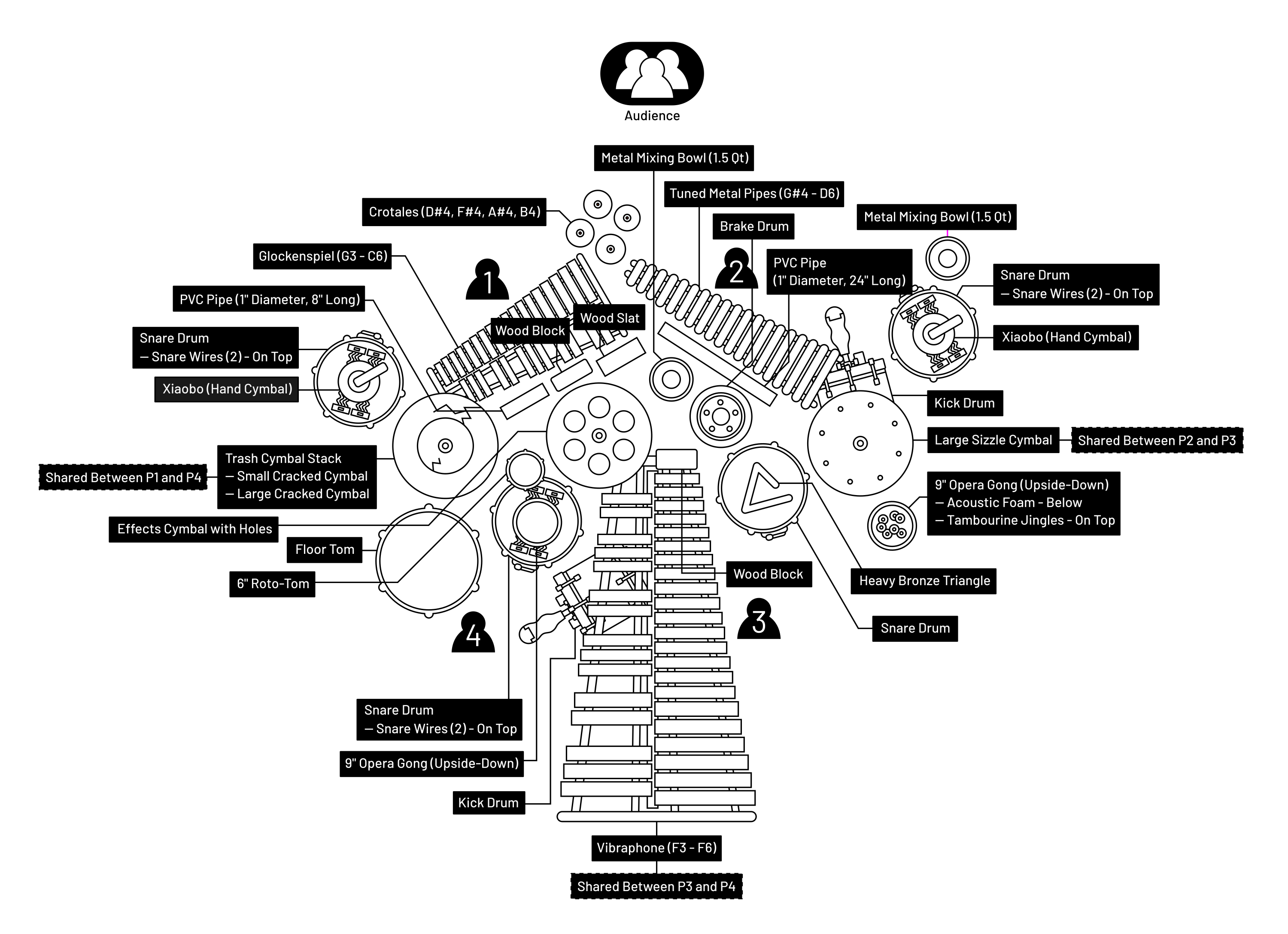 Brant Blackard · Cory Doran · Eastman Percussion Ensemble (Michael Burritt) · Scott Gustafson · Chris Harris · KMFA 89.5 · The OCU Percussion Group (Tommy Dobbs) · Matchstick Percussion · Central Michigan University (Marco Schirrpa) · Cy Miessler · Paul Millette · MouSai Duo (Maddie Wallace and Sophia Lo) · Penn State Percussion Studio (Lee Hinkle) · Carl Tafoya · Texas A&M University-Commerce (Brian Zator) · Ivan Trevino · UT Austin Percussion Ensemble (Thomas Burritt) · Graham Viegut · The Wildlight Collective